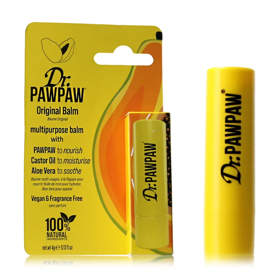 Dr. PAWPAW Original Balm 4 g ist ein multifunktionaler Balsam, der intensive Hydratation, Schutz und Beruhigung der trockenen Haut bietet. Seine natürliche Formel mit Papaya-Extrakt, Aloe Vera und Olivenöl macht es ideal nicht nur für die Lippen, sondern auch für trockene Bereiche auf dem Körper, Nagelhaut oder als Erweichung Balsam für die Haare.