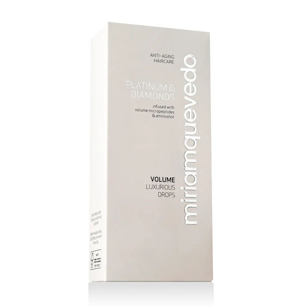 Miriam Quevedo Platinum & Diamonds Volume Luxurious Drops – Haarnebel für Volumen und Glanz, 150 ml ist ein luxuriöser Nebel ohne Ausspülen, der dem Haar Volumen, Glanz und Schutz verleiht. Seine Formel kombiniert Platin- und Diamantpulver mit fortschrittlichen Technologien, um das Haar zu revitalisieren und ihm ein gesundes Aussehen zu verleihen.