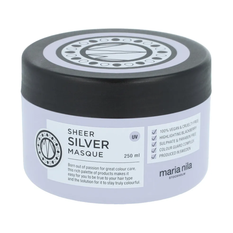 Maria Nila Sheer Silver Masque 250 ml – eine einzigartige Maske für die intensive Pflege von blondem Haar, die Gelbstiche neutralisiert, tiefgehende Feuchtigkeit spendet und die Haarfarbe vor dem Verblassen schützt. Ideal für die Regeneration und Verstärkung des kühlen Haartons.