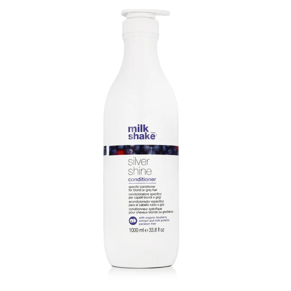 Milk Shake Silver Shine Conditioner – ein spezieller Conditioner für blondes, graues oder gebleichtes Haar. Dieses Produkt enthält violette Pigmente, die unerwünschte Gelbtöne neutralisieren und gleichzeitig das Haar mit Feuchtigkeit versorgen, es weich machen und ihm Glanz verleihen.
