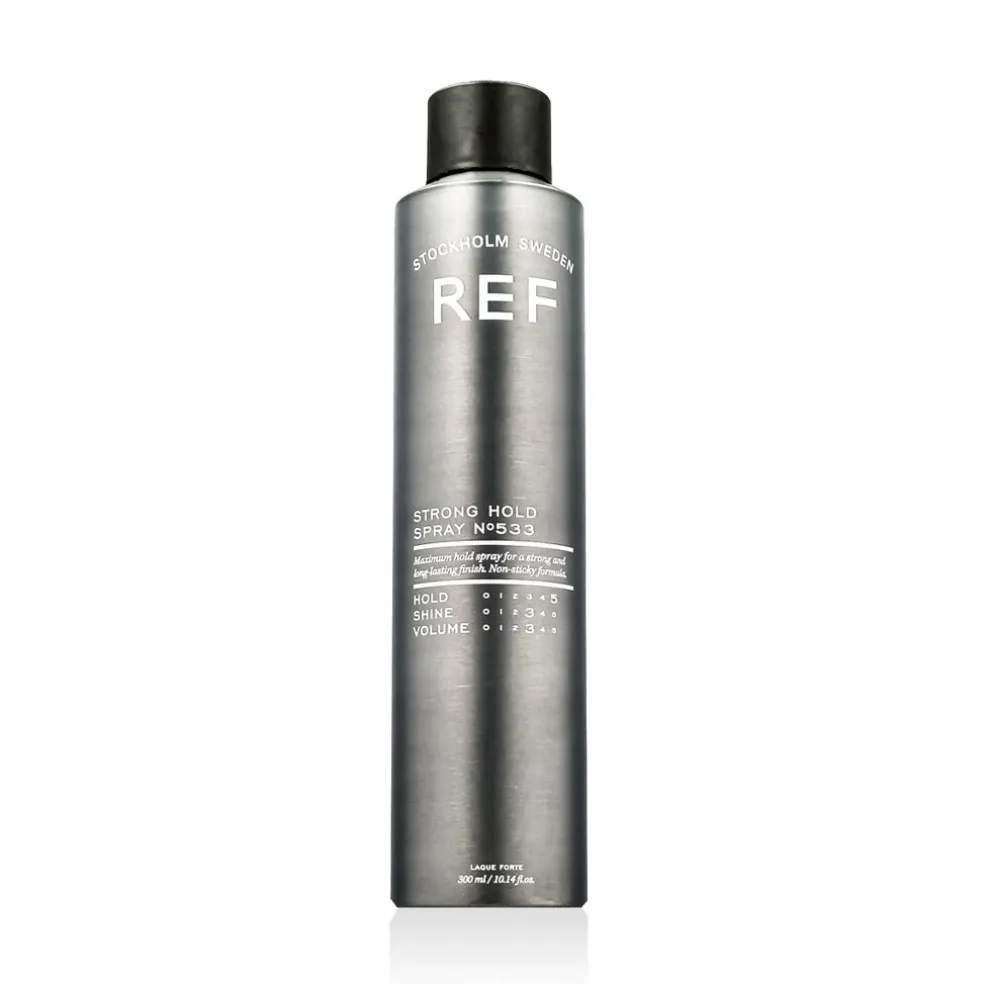 REF Strong Hold Spray 300 ml ist ein Fixierspray mit starkem Halt, das langanhaltenden Halt, Feuchtigkeitsbeständigkeit und Haarschutz für den ganzen Tag bietet. Außerdem verleiht es dem Haar Glanz und Volumen, ohne es zu verkleben oder zu beschweren. Ideal, um selbst die präzisesten Frisuren zu kreieren und zu fixieren.