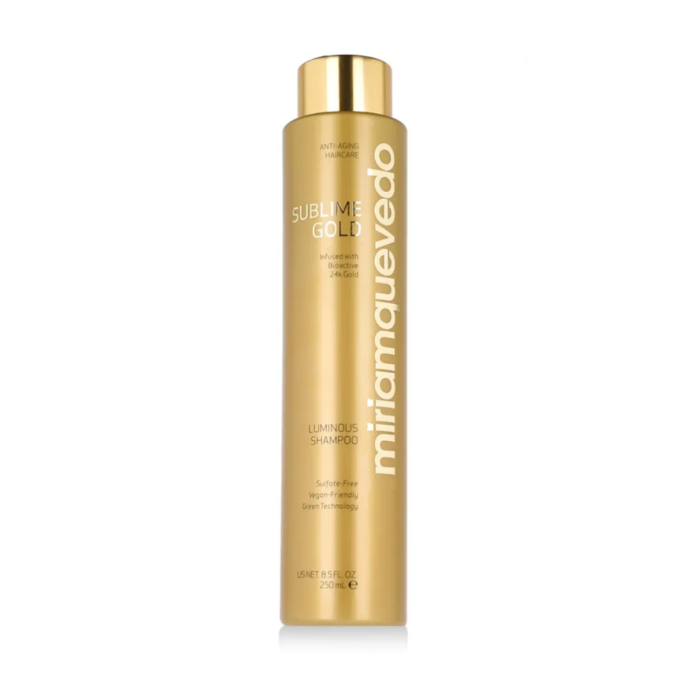Miriam Quevedo Sublime Gold Luminous Shampoo 250 ml ist ein luxuriöses, nährendes Shampoo, das dem Haar tiefe Regeneration, Anti-Aging-Schutz und strahlenden Glanz verleiht. Seine erhabene Formel mit bioaktivem 24-karätigem Gold, Stammzellen des wilden Olivenbaums und Vitamin-D-Nektar fördert die Erneuerung der Haarfaser und der Kopfhaut, schützt die Haarfarbe und stärkt die Haarstruktur. Das Shampoo nährt das Haar , ohne es zu beschweren, verbessert seine Elastizität und Geschmeidigkeit und lässt es jugendlich, weich und strahlend aussehen.