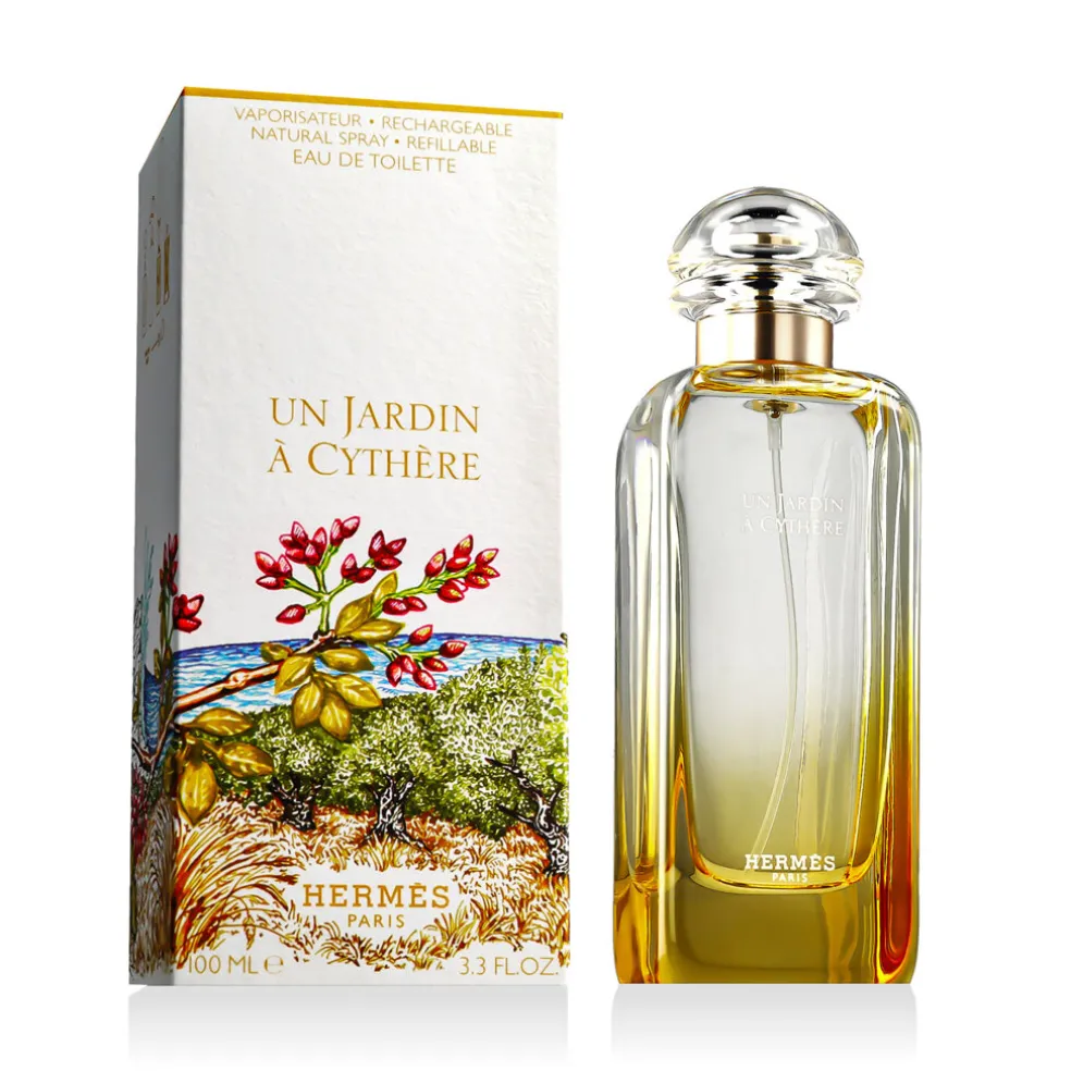 Un Jardin à Cythère von Hermès, Teil der kultigen „Un Jardin“-Serie , ist ein poetischer Duft, der Sie in einen Garten voller Sinnlichkeit und Geheimnisse einlädt, versteckt in der mythischen Inselidylle von Cythéra.