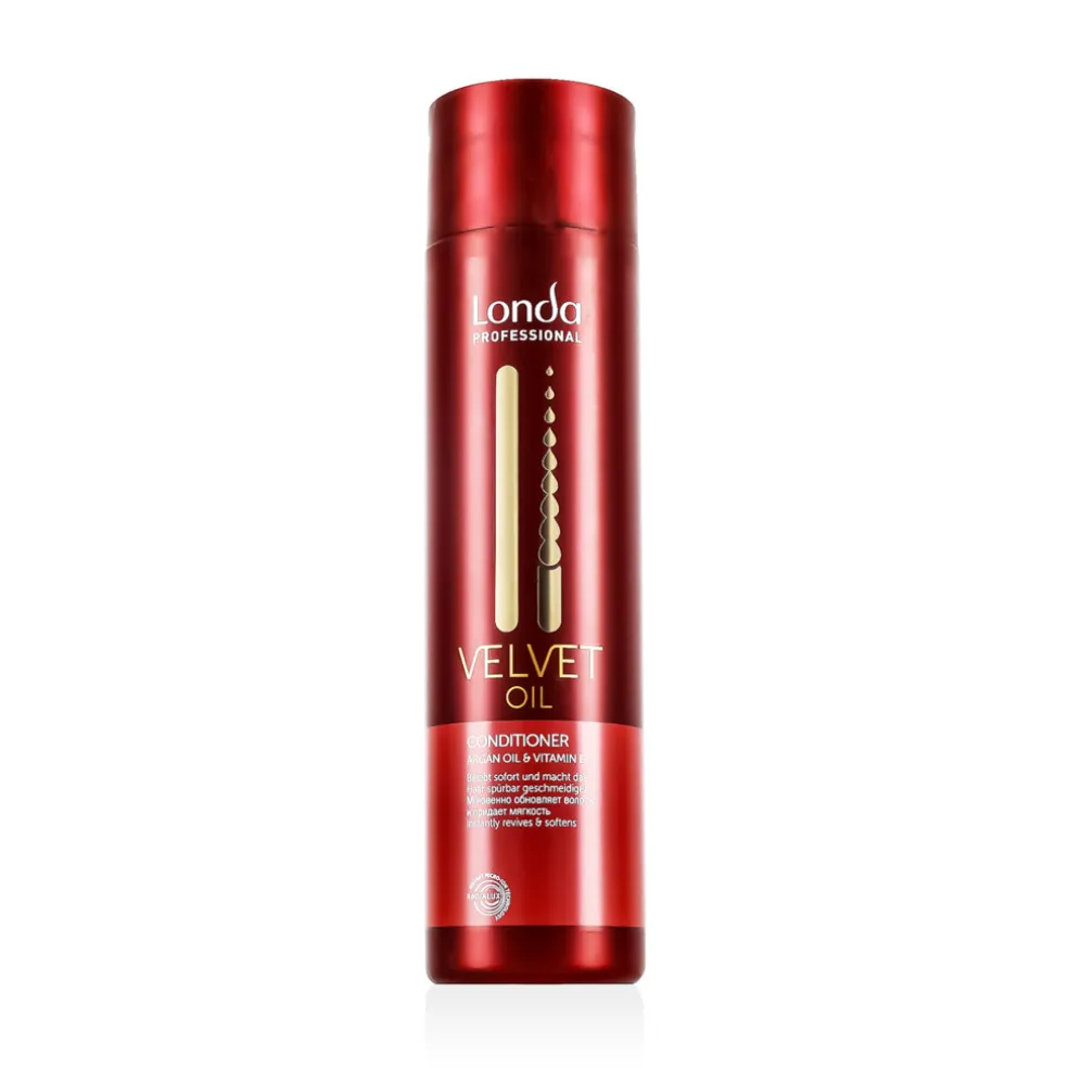 Londa Professional Velvet Oil Conditioner – revitalisierende Pflegespülung für trockenes, geschädigtes und geschwächtes Haar, die dem Haar Kraft, Geschmeidigkeit und Glanz zurückgibt. Dank der Anreicherung mit Argan- und Mandelöl nährt und regeneriert sie die Haarfaser intensiv, während die leichte Formel selbst feines Haar nicht beschwert.