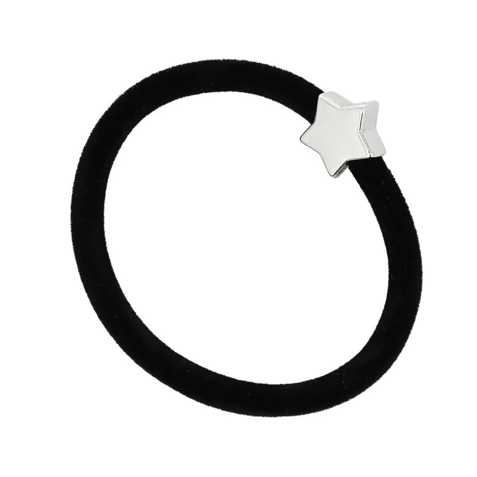 By Eloise London Velvet Silver Star Black ist ein luxuriöses Gummiband aus Samt in elegantem Schwarz, das Ihrer Frisur einen raffinierten Look verleiht. Das Gummiband ist mit einem stilvollen silbernen sternförmigen Anhänger verziert, der ihm ein dezentes und doch unverwechselbares Design verleiht. Dank des weichen Samtmaterials ist es nicht nur schön, sondern auch sanft zum Haar, zieht nicht und hinterlässt keine Fransen.